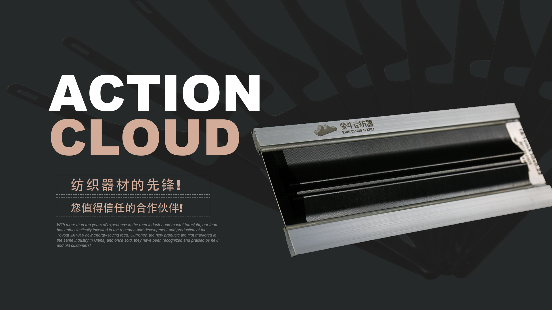 憑借十多年鋼筘行業(yè)經(jīng)驗(yàn)及對(duì)市場的前瞻性,我們團(tuán)隊(duì)滿懷熱情的投入到豐田JAT810新型節(jié)能鋼筘的研發(fā)和生產(chǎn)當(dāng)中,目前新產(chǎn)品在國內(nèi)同行業(yè)中先行上市銷售,一經(jīng)銷售就得到了新老客戶的認(rèn)可和好評(píng)!